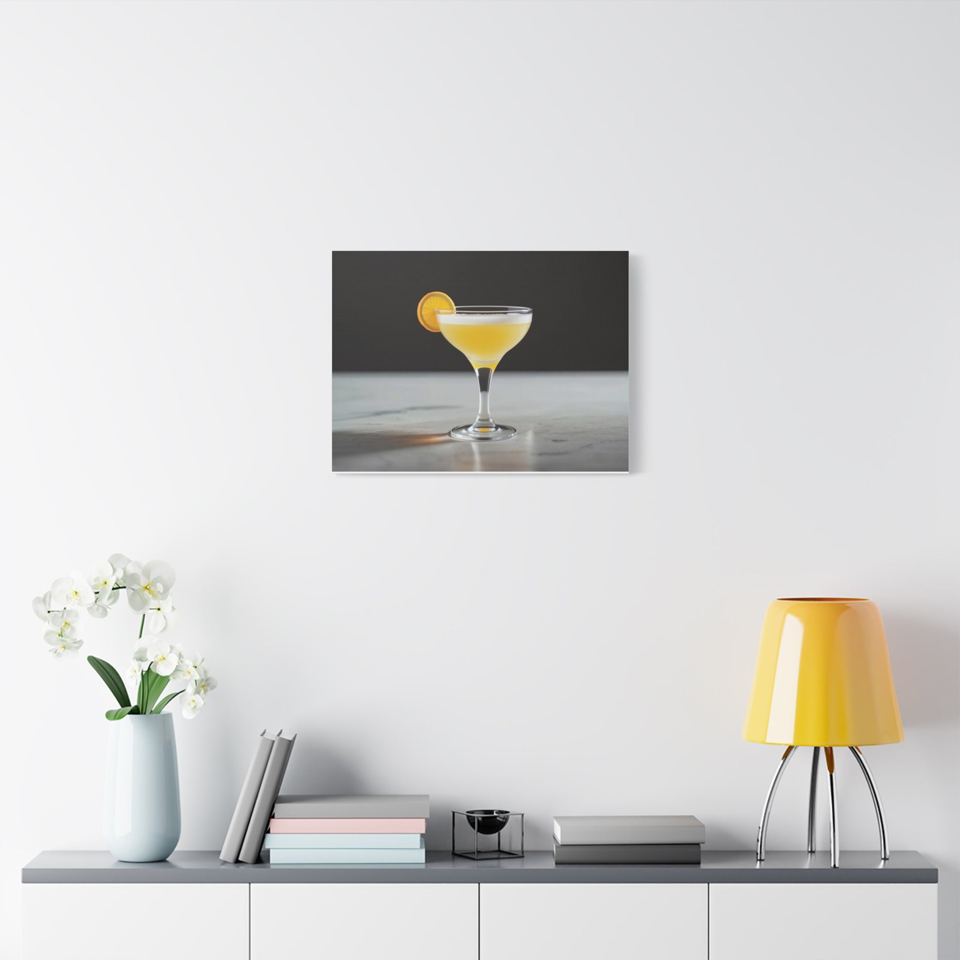 Bright, minimal, and quietly elegant — this stretched matte canvas captures a single citrus cocktail in soft morning light. The image feels like a pause: cool marble, a slender stem, and a slice of orange catching the glow. It slips effortlessly into a modern kitchen, a home bar, or a cozy café wall, adding a refined pop of color without overwhelming the room. Printed with non-toxic latex inks on a cotton-poly canvas and stretched over sustainable pine, the piece balances gallery-quality clarity with everyday durability. Ready to hang, it brings a calm, curated moment to spaces that celebrate slow sipping and thoughtful design.
